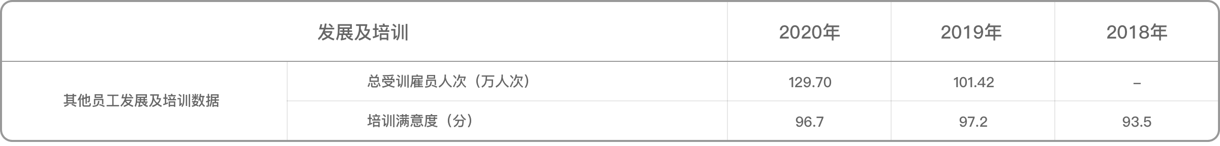 雇佣特殊人士:碧桂园也努力成为包容性与多元化的典范,吸引更多元化的人才,致力为残障人士提供平等就业机会,以及向他们提供可发挥各自所长以及天赋的平台。截至2020年末,集团房地产板块雇佣残障员工151人,较2019年增加91.1%。