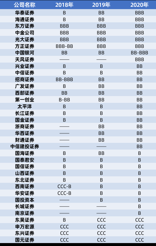 35家中国证券公司近三年MSCI ESG评级结果