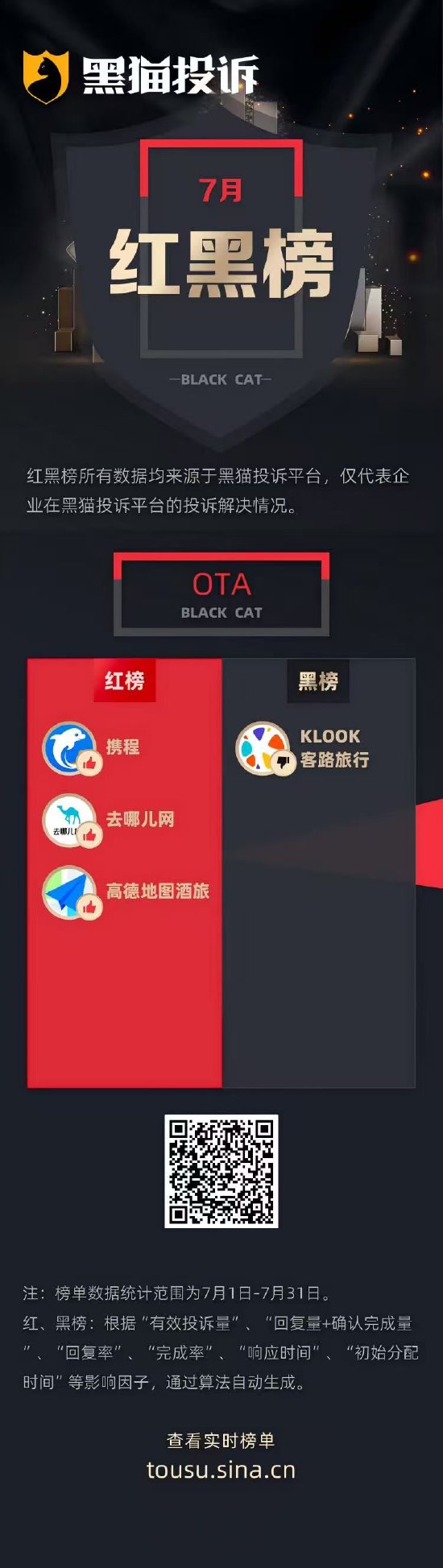 黑猫投诉7月行业红黑榜单