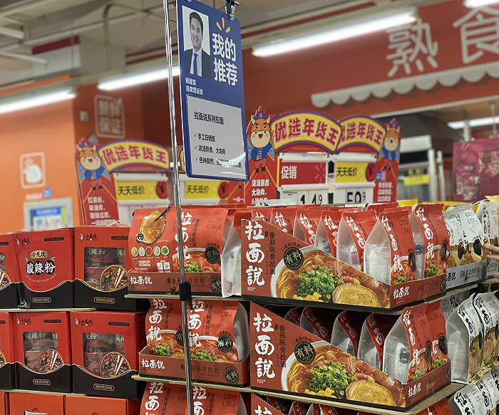 2021年1月,拉面说在北京沃尔玛超市被重点推介。(图片拍摄:赵晓娟)