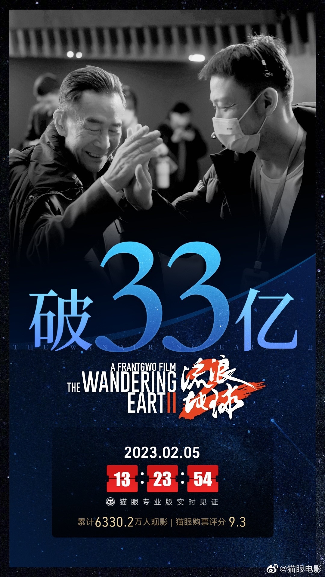 猫眼专业版数据显示,电影《流浪地球2》上映15天,总票房突破33亿元。