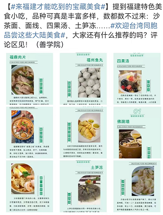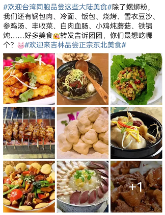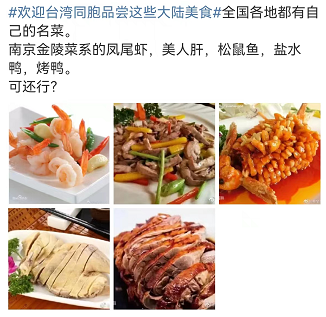 一呼百应,社交媒体上随即开启话题“欢迎台湾同胞品尝这些大陆美食”。