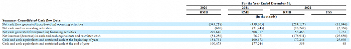由于过往的亏损规模过大,美联教育现金持续净流出,2020年,其经营活动现金净流出高达3.43亿元;2021年,现金流出增加到4.59亿元,2022年净流出2.1亿元。