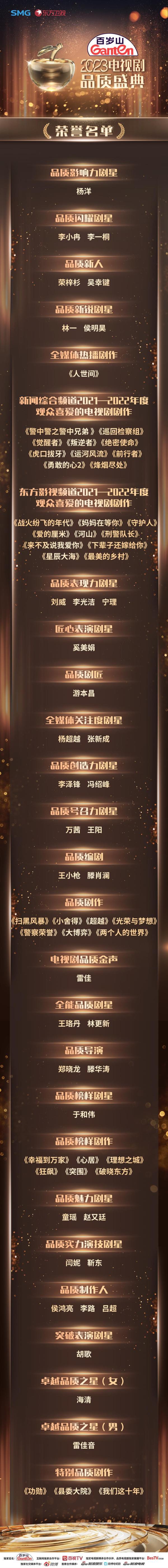 2023电视剧品质盛典紧扣“向光而行,向阳而生”主题,延续往年对优秀剧作的表彰。在过去的两年中,主旋律及现实主义题材剧作大放异彩。此次盛典云集了这两年中国电视剧的品质之作。