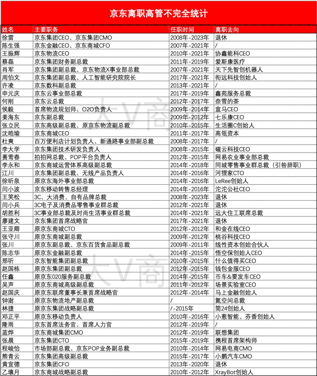 这是一个庞大的群体,他们在职时足够低调,京东过去20年的时间里,从京东离职的高管数量达到数百人。