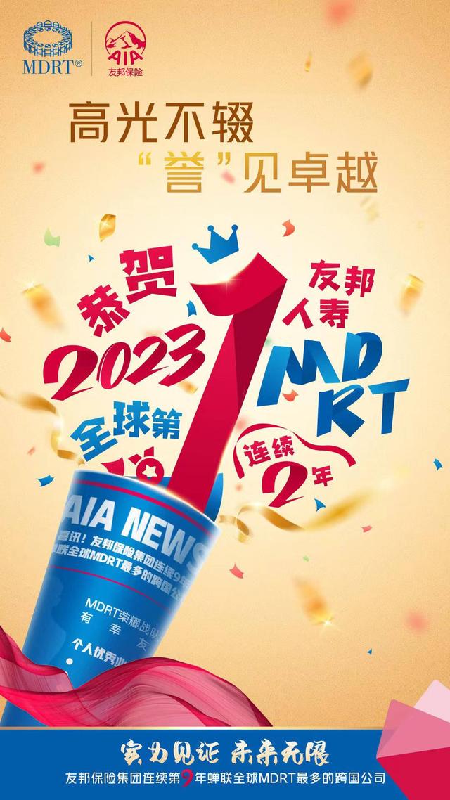 友邦人寿保险有限公司7月13日宣布,成为蝉联全球百万圆桌(MDRT)注册会员人数第一的寿险公司。根据近日MDRT官方最新公布的排名名单,友邦人寿2023MDRT注册人数再次登顶全球榜单,连续第二年成为全球以及中国内地MDRT会员人数最多的寿险公司。同时,友邦人寿女性MDRT会员人数也名列全球第一。友邦人寿取得的佳绩助力友邦保险控股有限公司及其附属公司(以下简称“友邦保险集团”)连续9年成为全球拥有最多MDRT会员的公司。