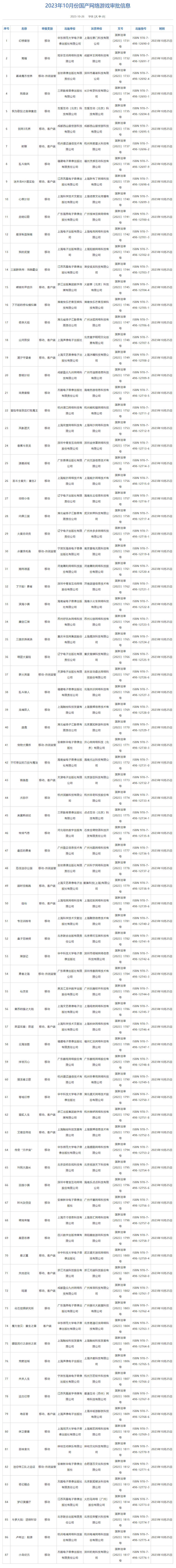 (原标题:《2023年10月份国产网络游戏审批信息》)