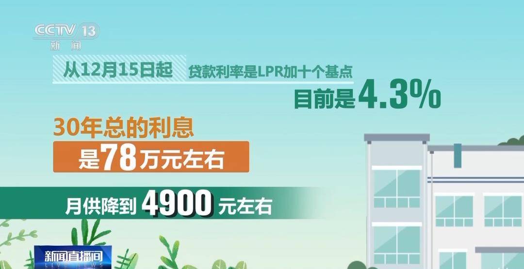 以贷款100万元30年期购买一套城六区的首套房计算,在12月14日及之前实行的贷款利率是4.75%,30年的利息支出大概是在88万元左右。每个月的月供是5200元左右。从12月15日起,贷款利率是LPR加十个基点,目前是4.3%,30年总的利息是78万元左右,月供降到了4900元左右。