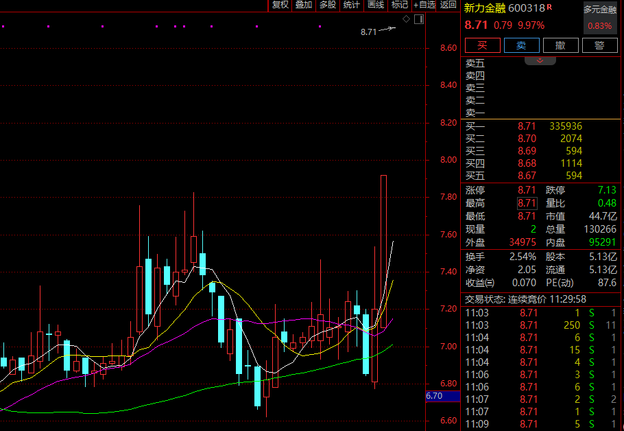 多元金融早间逆势高开高走,板块指数盘初一度直线拉升涨近2%,半日成交接近昨日全天成交。新力金融在昨日涨停基础上,今日开盘一字涨停,股价创1年多来新高;华金资本亦2连板,创近两年半新高;九鼎投资等也强势封板。