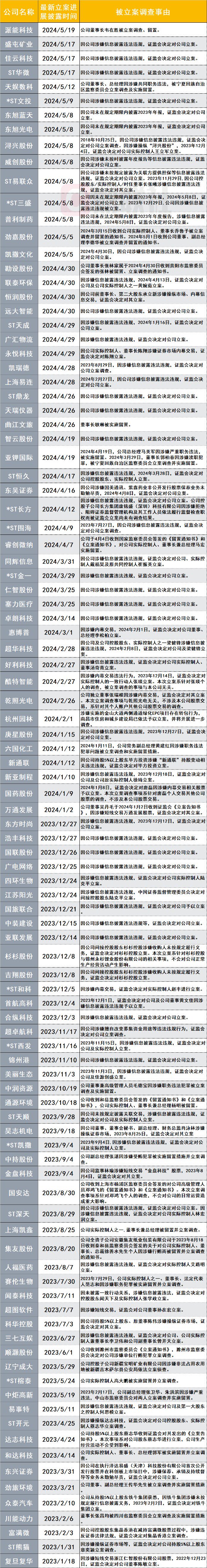 据不完全统计,截至5月20日,2023年以来,沪深两市共有101家上市公司涉及上市公司本身、公司高管正被立案调查事项,截至目前尚未结案。其中2023年被立案调查涉及的上市公司有50家,2024年至今涉及的上市公司有51家。