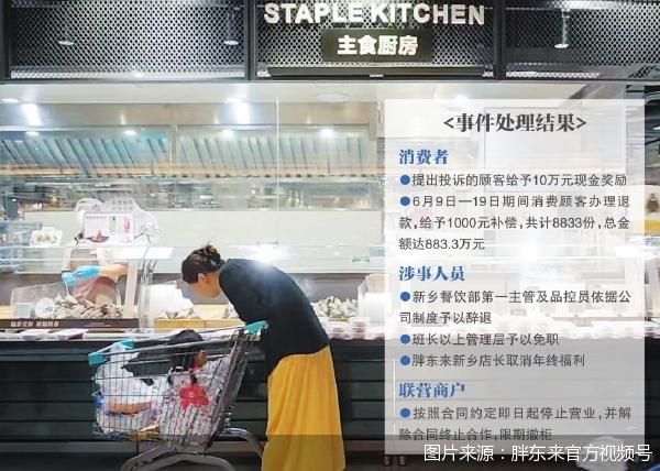 据了解,上述事件为6月25日消费者在抖音平台反馈称,新乡胖东来联营餐饮擀面皮加工场所卫生环境较差的问题。实际上,胖东来餐饮部于6月19日已接到顾客的反馈并开启调查,涉事档口在停业整改后恢复营业。胖东来在看到抖音平台相关视频后,成立了调查小组介入处理。