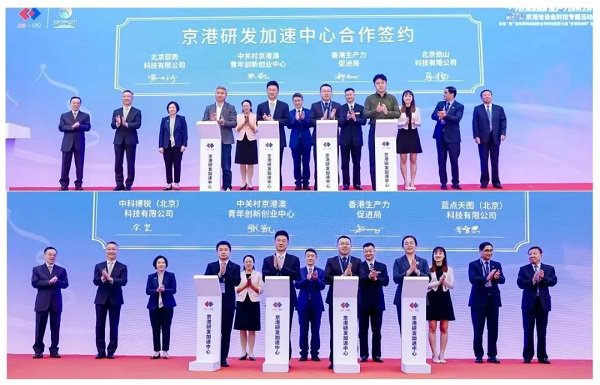 随后,受邀嘉宾共同为中关村京港澳青年创新创业中心与香港生产力促进局共建的“京港研发加速中心”揭牌,并见证了驭势科技、他山科技、中科搏锐、蓝点天图等4家中关村科创企业与“京港研发加速中心”签署科研合作意向协议。
