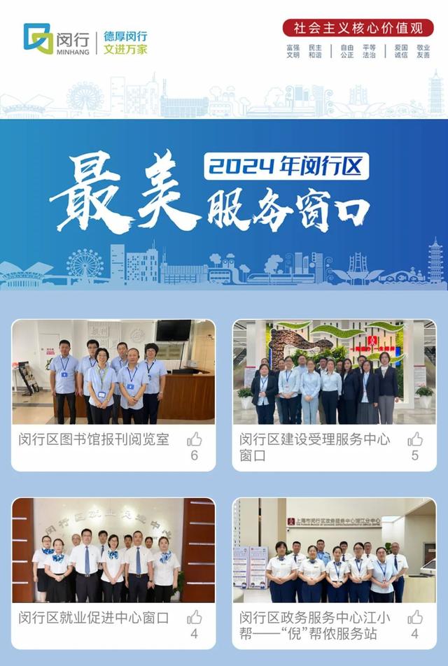 为持续打造文明窗口服务品牌,不断提升窗口服务保障能级,巩固深化全国文明城区建设,近期,闵行区开展了新一轮寻找“最美服务窗口”活动,共有48个优秀窗口脱颖而出。在第七届进博会即将开幕之际,我们将通过四期H5专题,带领大家一同领略新一届闵行区“最美服务窗口”的风采。