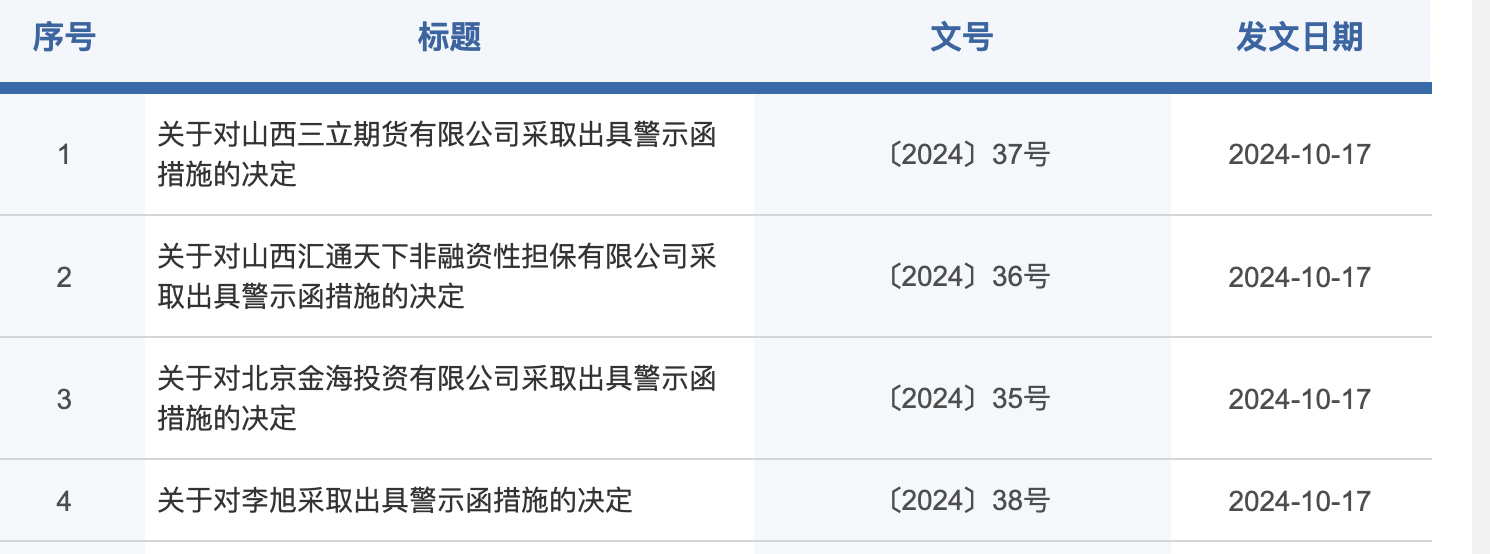 报送信息造假、大股东使用负债资金增资,10月17日,总部位于山西的三立期货、公司董事长、公司股东被山西证监局点名处罚。