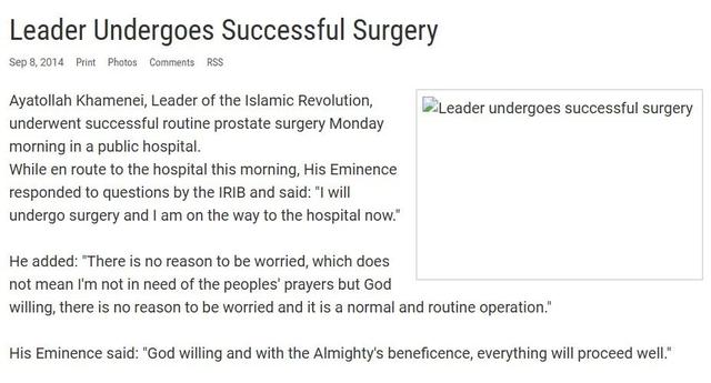 “青年记者俱乐部”网页截图。如今在办公室官网上,该图已不可见,不过相关报道文字部分解释称,哈梅内伊当时进行了前列腺常规手术,手术顺利。