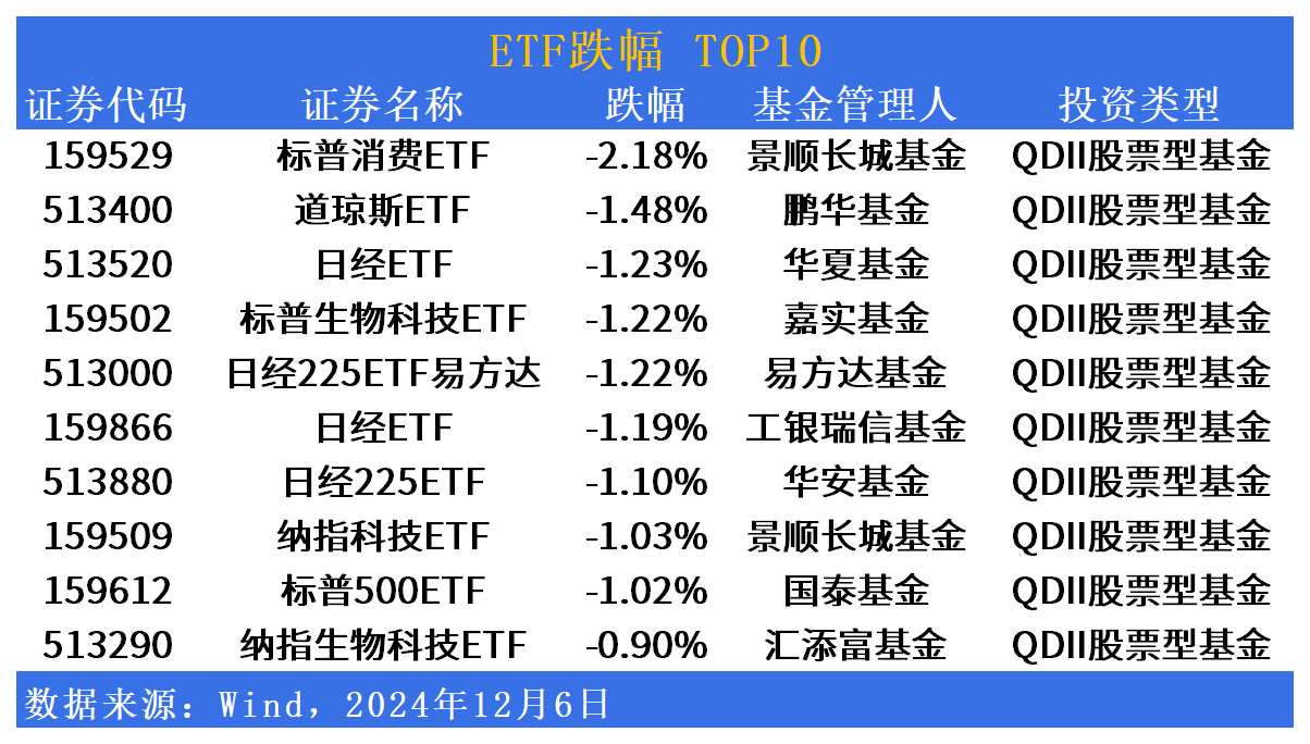 隔夜外盘方面,美股三大指数集体收跌,截至当天收盘,道琼斯工业平均指数比前一交易日下跌248.33点,收于44765.71点,跌幅为0.55%;标准普尔500种股票指数下跌11.38点,收于6075.11点,跌幅为0.19%;纳斯达克综合指数下跌34.86点,收于19700.26点,跌幅为0.18%。