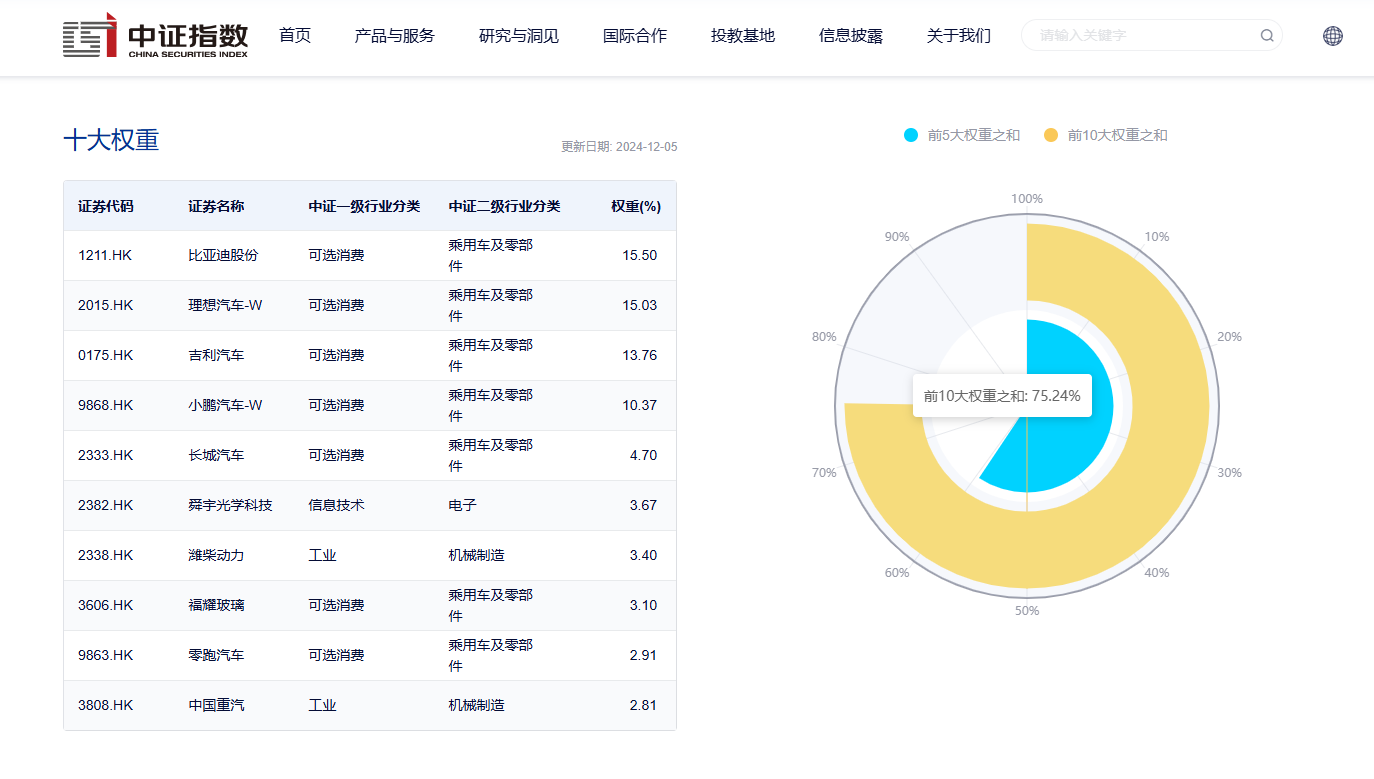 中证指数官网数据显示,该指数主要成份股包括比亚迪股份、理想汽车、吉利汽车、小鹏汽车、长城汽车等。