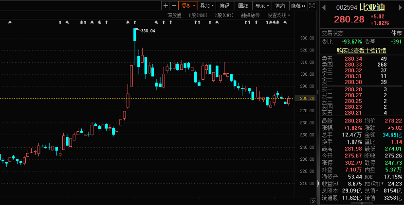 华龙证券认为,比亚迪销量基本盘稳固,高端新品储备丰富有望支撑公司推进高端化进程。比亚迪估值低于可比公司平均值,维持“买入”评级。