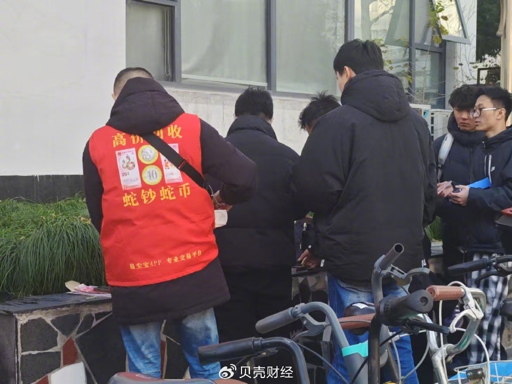 贝壳财经记者在现场看到,上海一银行网点不仅汇集了市民前来兑换蛇钞蛇币,二手市场的交易者也趁热高价收购。在这些人中,有人自称古玩商,也有人坦率地表示:“我就是黄牛!”