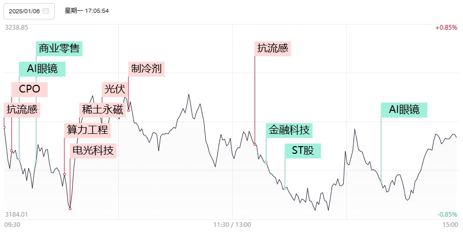 1月3日,微软公司表示,公司计划在2025财年投入800亿美元用于建设人工智能数据中心。算力硬件股中数据中心方向仍表现亮眼,但受到铜缆等高位方向持续补跌拖累,除去剑桥科技报收涨停外,共进股份以及“易中天”光模块三巨头悉数走出冲高回落。不过受到字节跳动发布自建数据中心变电站设计框架采购寻源公告的消息提振,数据中心变压器、灾备电源等新细分继续得到资金挖掘,中恒电气、动力源、科林电气等多股逆势涨停。目前对于算力硬件端而言,业绩层面主要取决于GB200以及今年将要发布的GB300能否实现量产。字节等国内巨头的算力资本开支则对应国产算力以及电源设备细分。而随着CES大会的召开在即,由于不少资金担忧利好兑现,成为今日AI眼镜概念资金抢跑展开补跌的主因。尽管英伟达发布新版显卡的消息刺激AI PC概念一度尝试补涨动作,但短期整个AI眼镜为首的端侧硬件的资金兑现压力仍难以逆转。