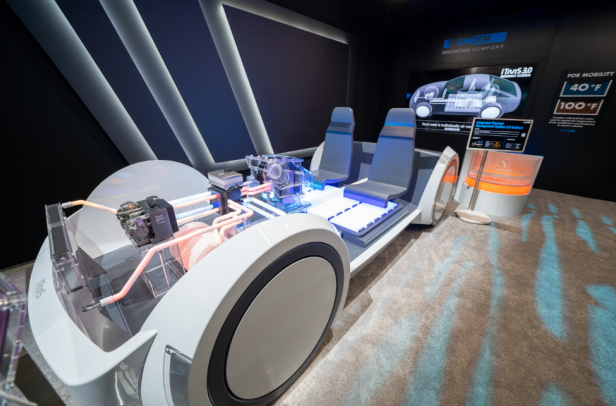 海信旗下三电公司展示汽车综合热管理系统,有效解决电动汽车冬季续航衰减和使用自然冷媒时的驾驶舱内的安全性问题,在提高能源效率的同时增强安全性。