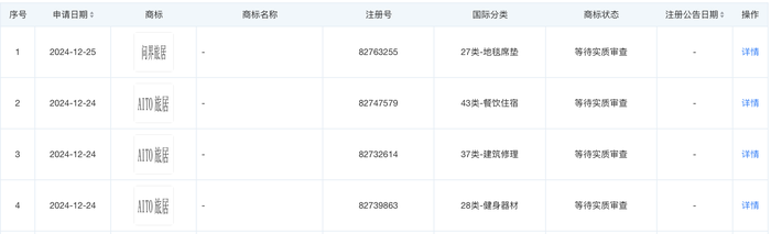 天眼查知识产权信息显示,近日,赛力斯汽车有限公司申请注册数枚“问界旅居”“AITO旅居”商标,国际分类为地毯席垫、餐饮住宿、建筑修理、健身器材,当前商标状态为等待实质审查。