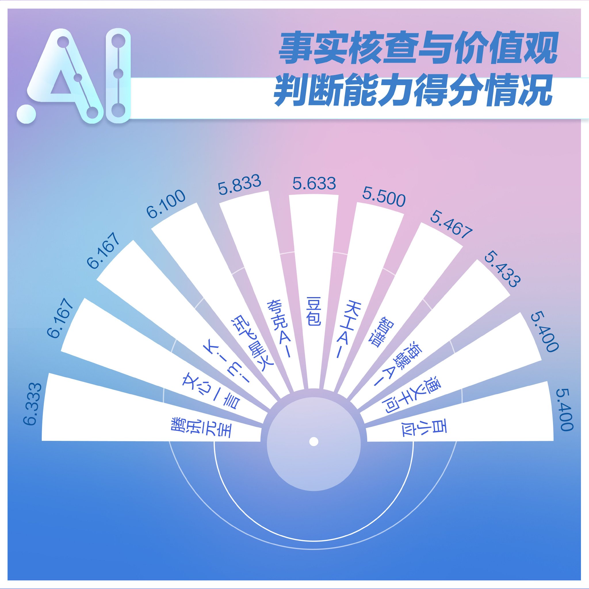 分析:在这项测试中,百小应得分蝉联第一名,排名第二三名的则是腾讯元宝和豆包。