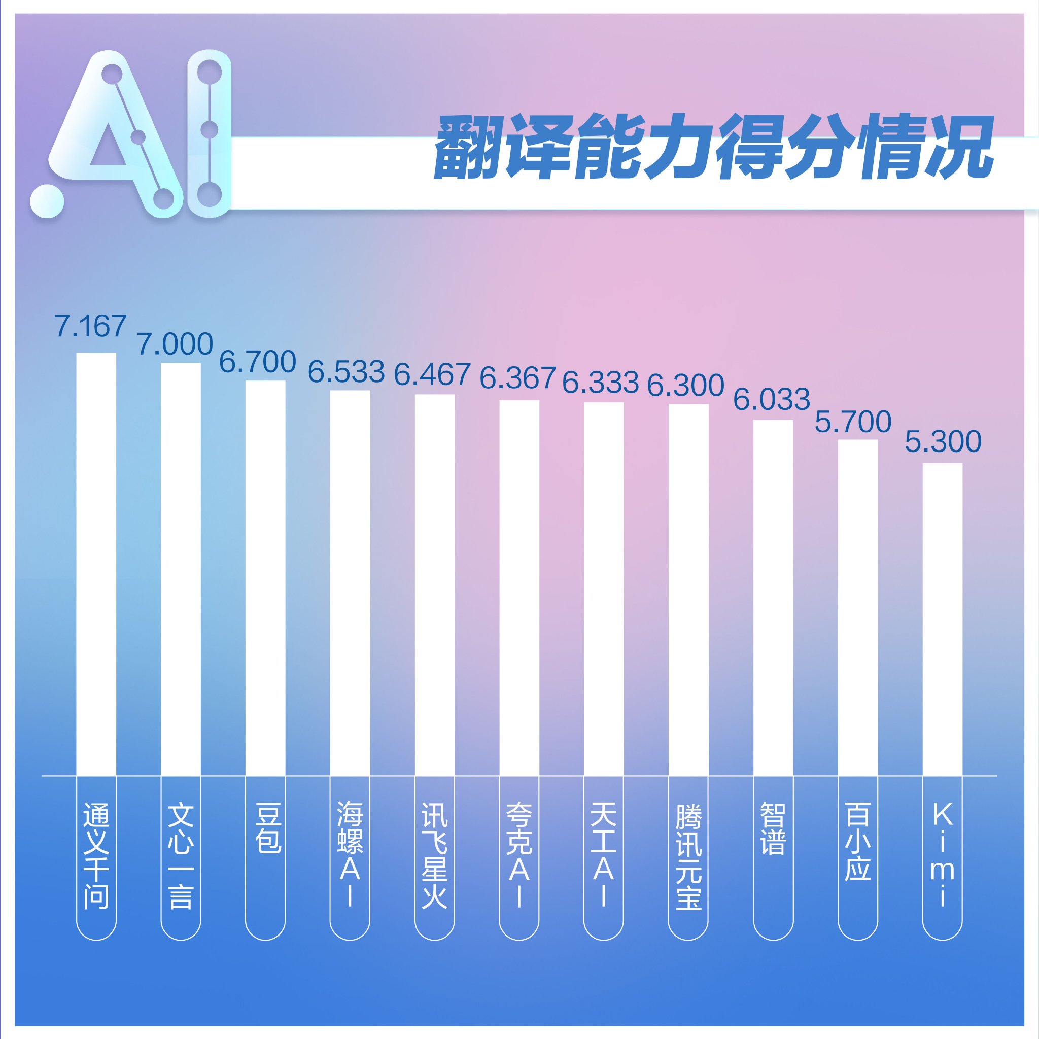 分析:这项测试中,通义千问、文心一言、豆包排名前三,而且各个大模型之间分差较大,这并非因为翻译能力,而是不少大模型对翻译内容出现了生成失败问题。