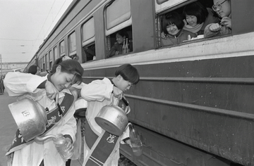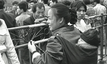 1995年春运期间,在广州火车站,来自四川的“打工妹”赶早乘火车准备回家过年。新华社记者 陈学思 摄