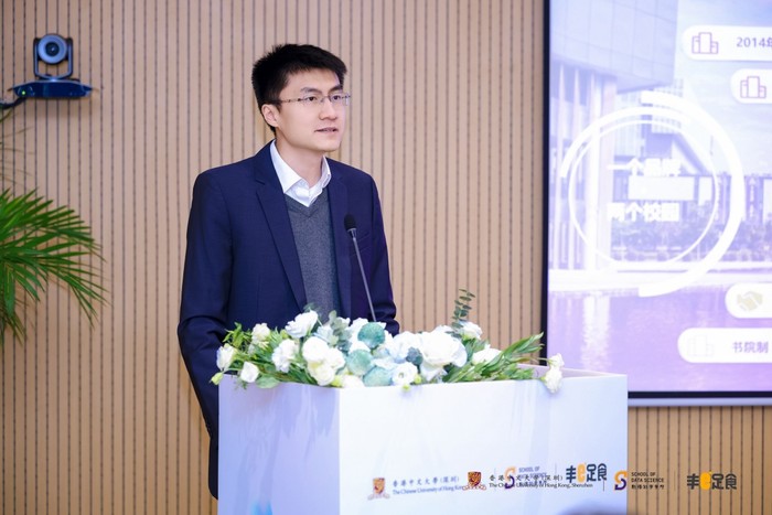 会上,港中大(深圳)数据科学学院副院长(教学)王子卓教授介绍了学院人才的整体情况和项目合作愿景。王教授详细阐述了学院在国际化发展、师资力量和科研实力方面的优势,并介绍了本科、硕士和博士等各项目。同时,王教授表达了对未来合作的期许,他指出零售行业的决策场景复杂,校企双方可以通过建模分析不同偏好人群,共同解决需求预测和精准选品的难题。