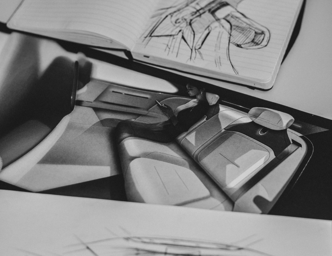 手绘图显示,新车采用纯粹极简的内饰设计。此外,新车拥有360°环拥式座舱,营造极强的温馨感,家族式的方向盘也没有缺席。