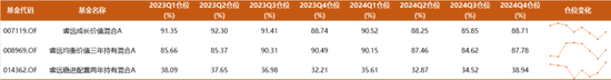 睿远均衡价值的情况与之相似,其仓位在2024年二季度下降到87.46%,在三季度又下降至低点84.62%,在四季度末加回了87.78%。