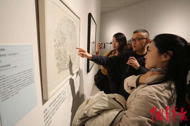 1月21日,北京泰康美术馆,参观者在“跨越六十年:人工智能的创意之火”展览现场聆听研究员导览。中青报·中青网记者 孔斯琪/摄