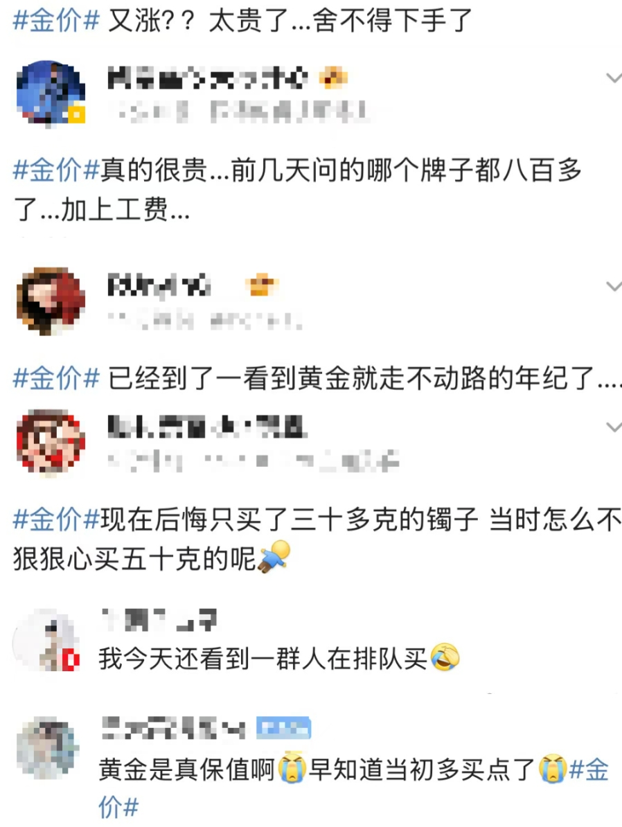 对此,不少网友大呼“金价涨得太快了”“后悔以前没多囤点”……