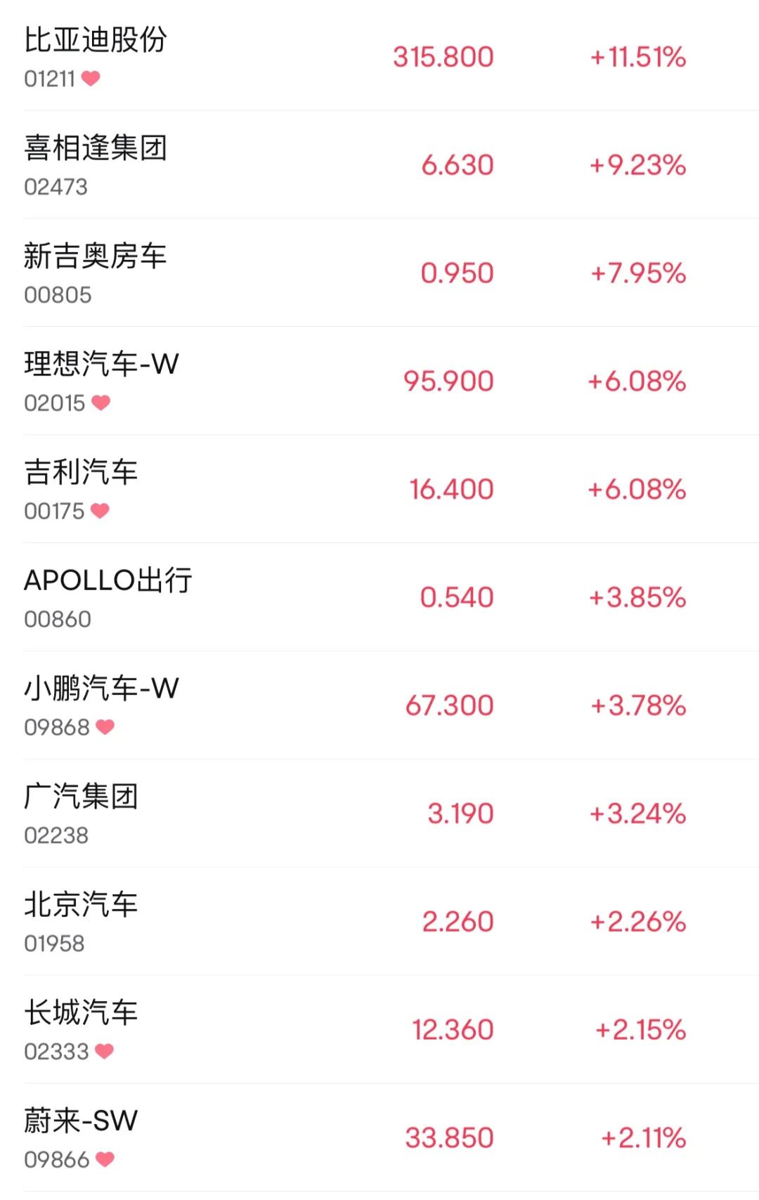 2月6日,比亚迪股份收涨11.51%,理想汽车-W、吉利汽车均涨超6%,小鹏汽车-W涨近4%。
