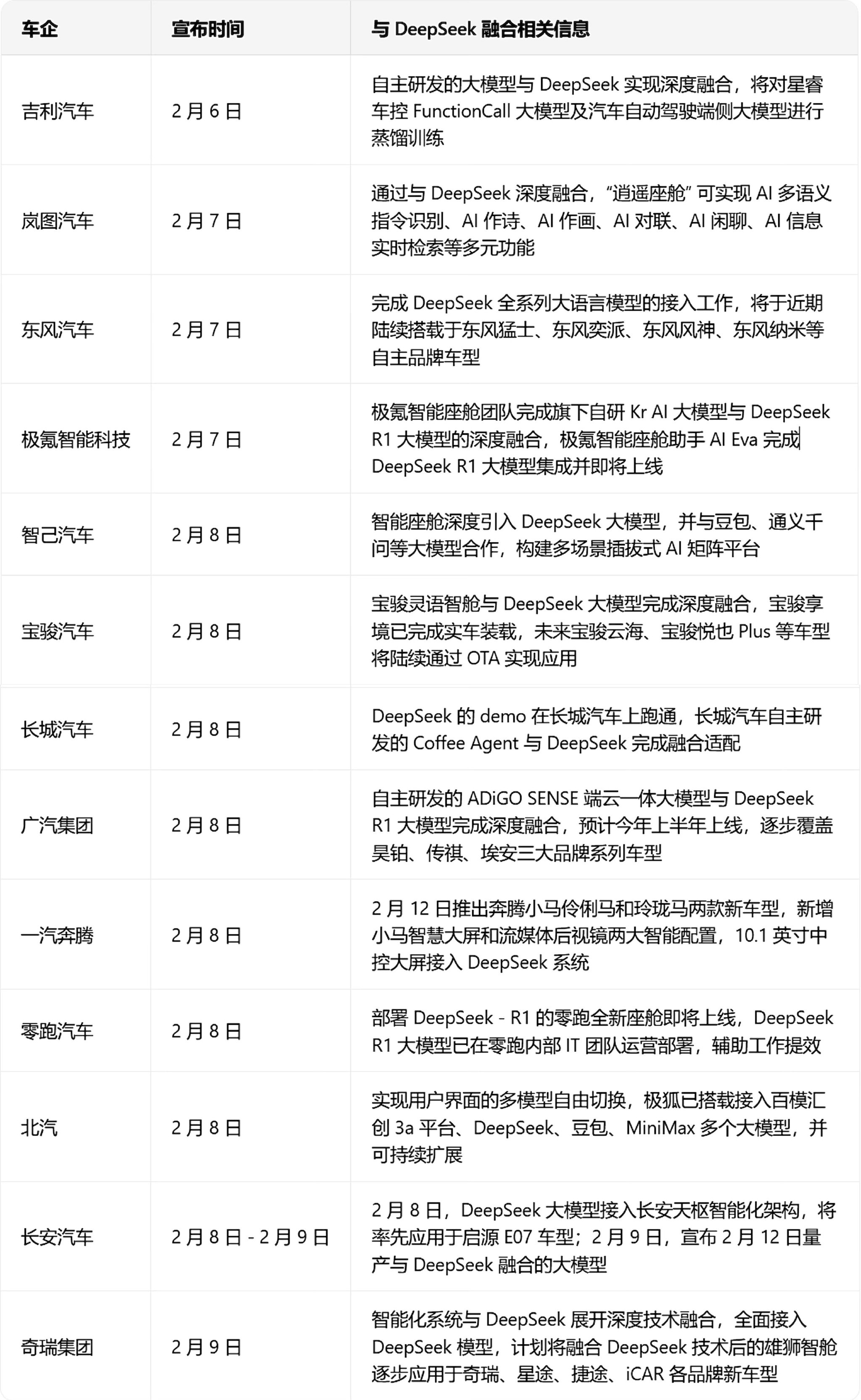 与此同时,有了以DeepSeek为代表的AI技术加持,有望让传统车企快速补齐智能化短板,缩小与新势力车企的智能化差距,让“后发先至”成为可能。