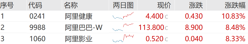 据报道,苹果将与阿里巴巴合作开发中国版AI功能。受此消息刺激,“阿里系”表现强势,阿里健康涨10.83%,阿里巴巴涨8.48%,阿里影业涨8.33%。