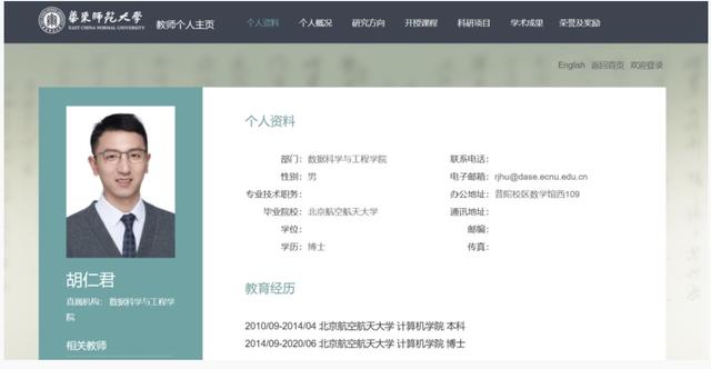 阿里云智能算法专家胡仁君近日已入职华东师范大学数据科学与工程学院