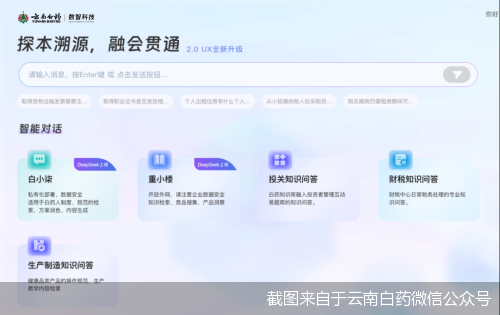 在接受北京商报记者采访时,云南白药方面表示,此次,云南白药进一步融合DeepSeek大模型作为云南白药AI技术底座能力之一,强化了企业大模型技术能力,基于DeepSeek大模型升级中医药行业雷公大模型DeepSeek版,以及在智能生产制造、分析预测等业务场景应用为内部员工率先提供了前沿的人工智能工具。