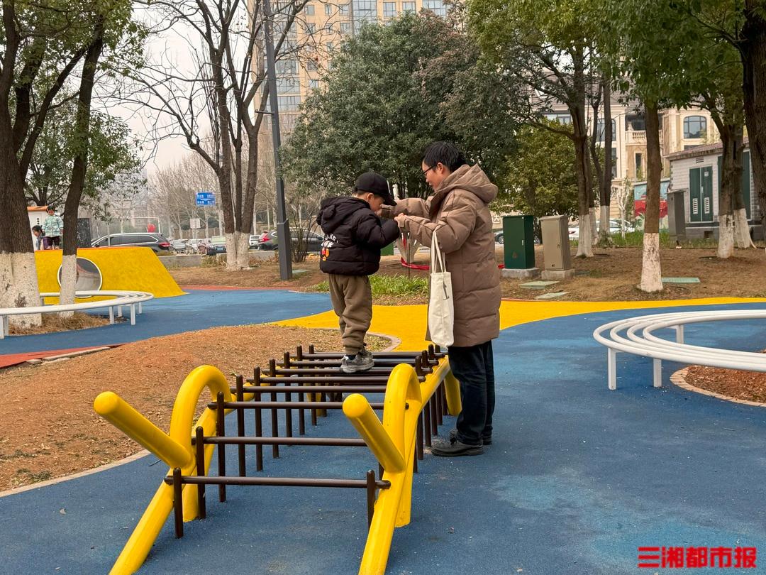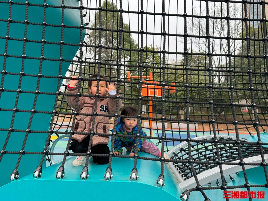 当天上午,记者来到位于湖南湘江新区梅溪湖街道连湖六路的“云梅溪”智慧银杏公园,看到附近居民纷纷来此运动、休闲,更有不少家长在此溜娃。千秋、跷跷板、滑滑梯、攀岩绳索上,孩子们在大人的看护下嬉耍着,时不时传来阵阵欢笑声。