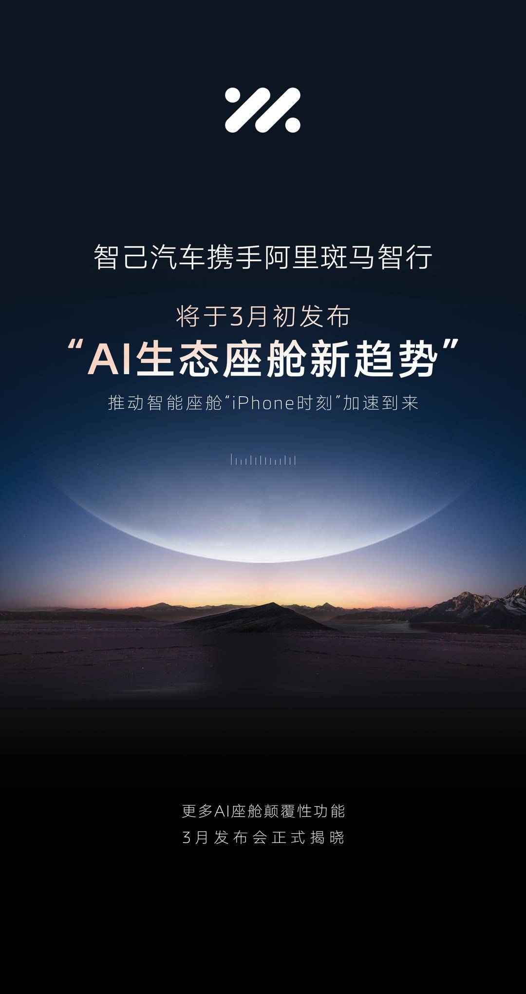 继苹果与阿里巴巴达成合作后,智己汽车今日宣布,将于3月初与阿里巴巴旗下斑马智行等板块联合发布“AI生态座舱新趋势”,聚焦智能座舱交互的“iPhone时刻”,打造全域智能互联生态,推动“车联万物”新时代。更多关于AI座舱的颠覆性功能将在3月发布会上正式揭晓。