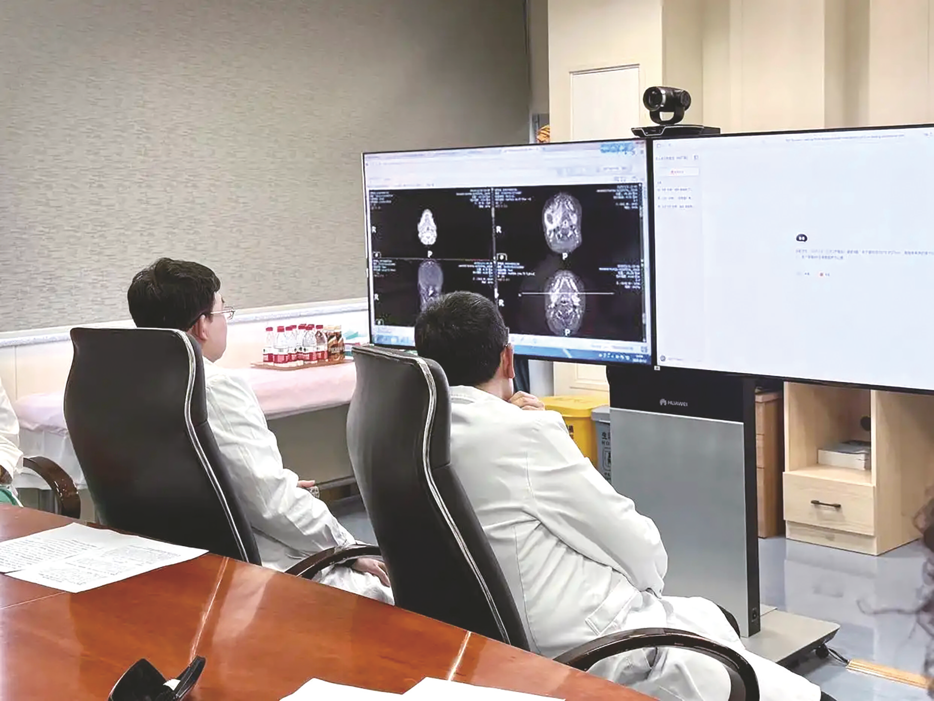 2月13日,北京儿童医院会诊中心“AI儿科医生+多学科专家”双医并行疑难病例多学科会诊现场,医生正在使用专家型AI儿科医生相关功能。