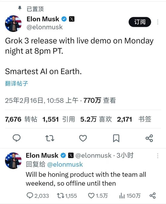 马斯克对“Grok3”信心十足