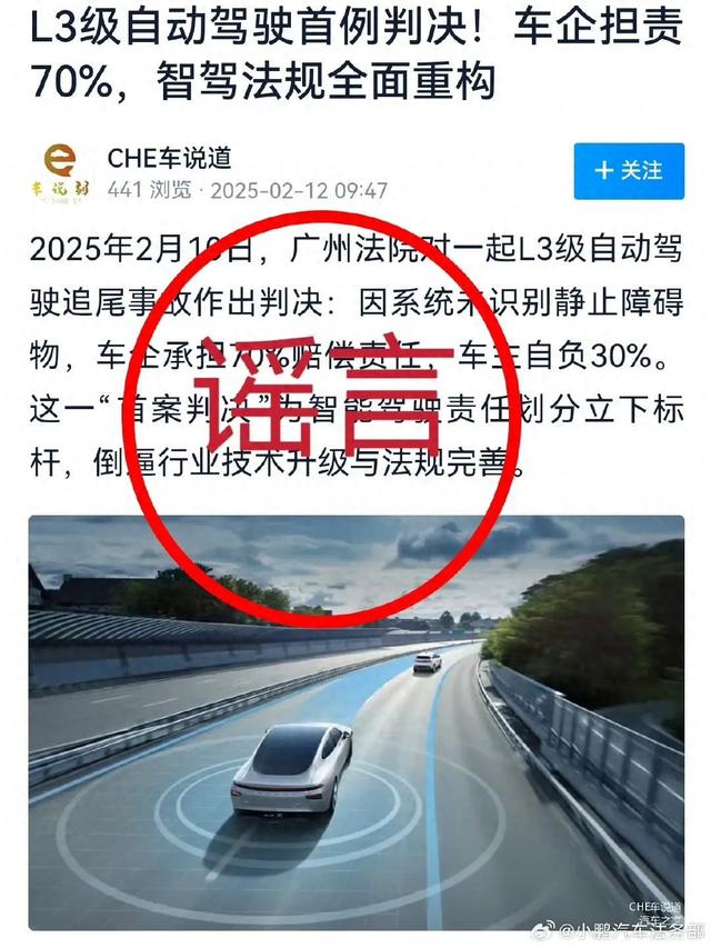 近日,一则“广州法院对一起小鹏汽车L3级自动驾驶追尾事故作出首例判决”的消息在网上广泛传播,引发舆论广泛关注。据悉,事情起因是某微博用户在多平台发布《L3级自动驾驶首例判决!车企担责70%,智驾法规全面重构》一文。文章称,2024年12月,车主王某驾驶小鹏G9(选装XNGP 4.0系统)在高速开启L3级自动驾驶,车辆未识别前方故障货车导致追尾,造成1死2伤。因系统未识别静止障碍物,法院判决车企承担70%的赔偿责任,车主自负30%。文章提到“国内首例智能驾驶致死案”将为智能驾驶责任划分立下标杆,倒逼行业技术升级与法规完善。