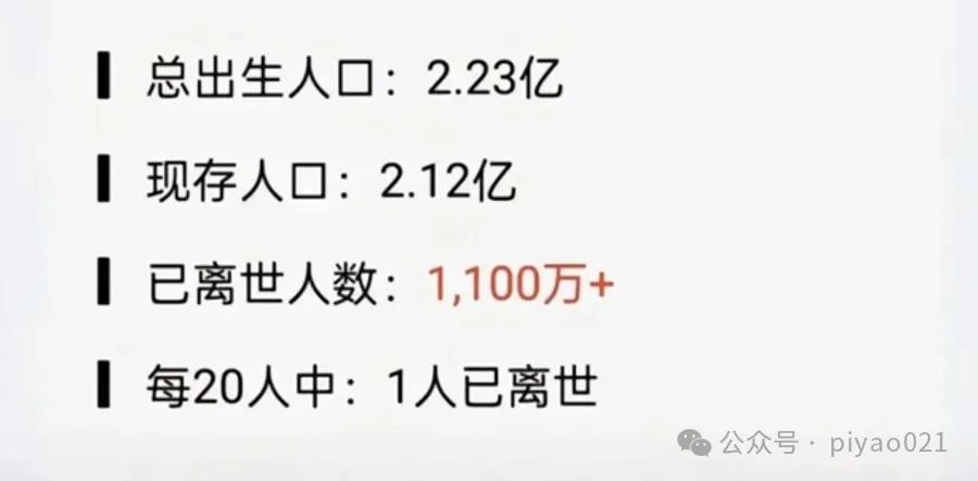 而2.12亿的数据,我们没有找到任何官方信息来源。死亡人数1100万,我们也未找到相关数据。在七普年鉴中,明确标出是2019年11月1日到2020年10月31日的死亡数据。30-39岁的人口这一年共死亡193517人。