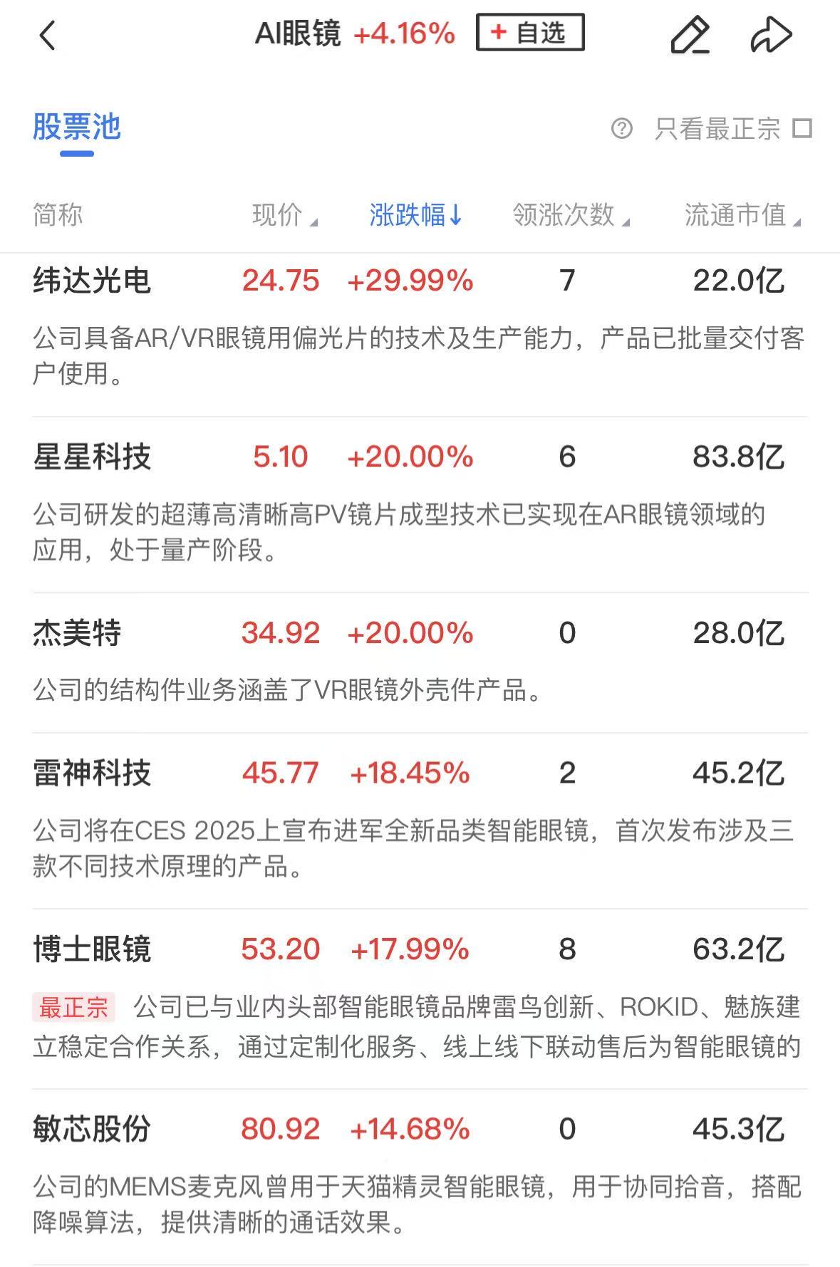 板块上,AI眼镜概念股全线爆发,杰美特、星星科技、纬达光电、比依股份、水晶光电、亿道信息等10余股涨停,博士眼镜、雷神科技、明月镜片、格林精密等个股涨超10%。