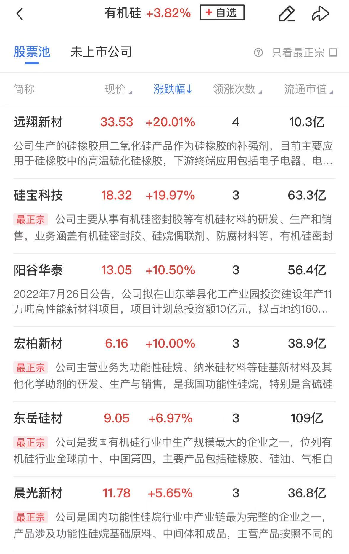 有机硅概念股涨幅居前,远翔新材、硅宝科技、宏柏新材等个股涨停,东岳硅材、晨光新材、回天新材等个股涨幅居前。
