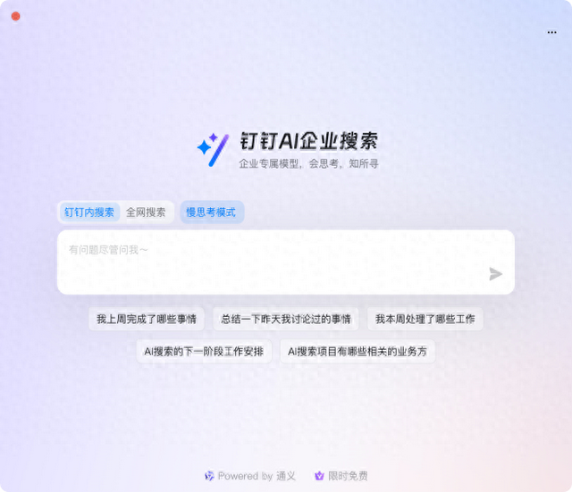 【环球网科技综合报道】2 月 20 日,钉钉宣布其 AI 企业搜索向所有用户免费开放,同时新增支持慢思考模式和全网搜索,支持移动端、桌面端 7.6.45 及以上钉钉版本。