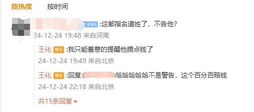 当被问及是否起诉造谣者时,王化强硬回应:“不是警告,造谣者百分百赔钱!”
