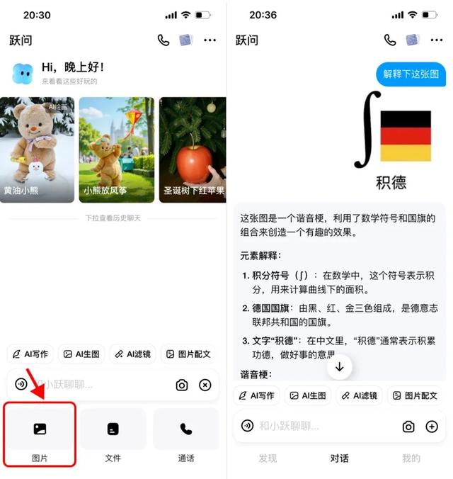 以上海游客为例,跃问App提供的上海三日旅游攻略,不仅包含常见的文字介绍,还会生成图文详尽的攻略,游客还能通过拍照了解景点更多资料,跃问App还能进行语音讲解。